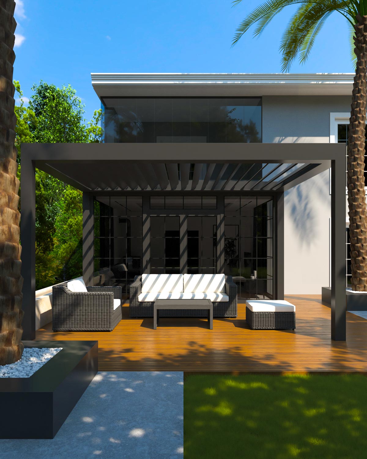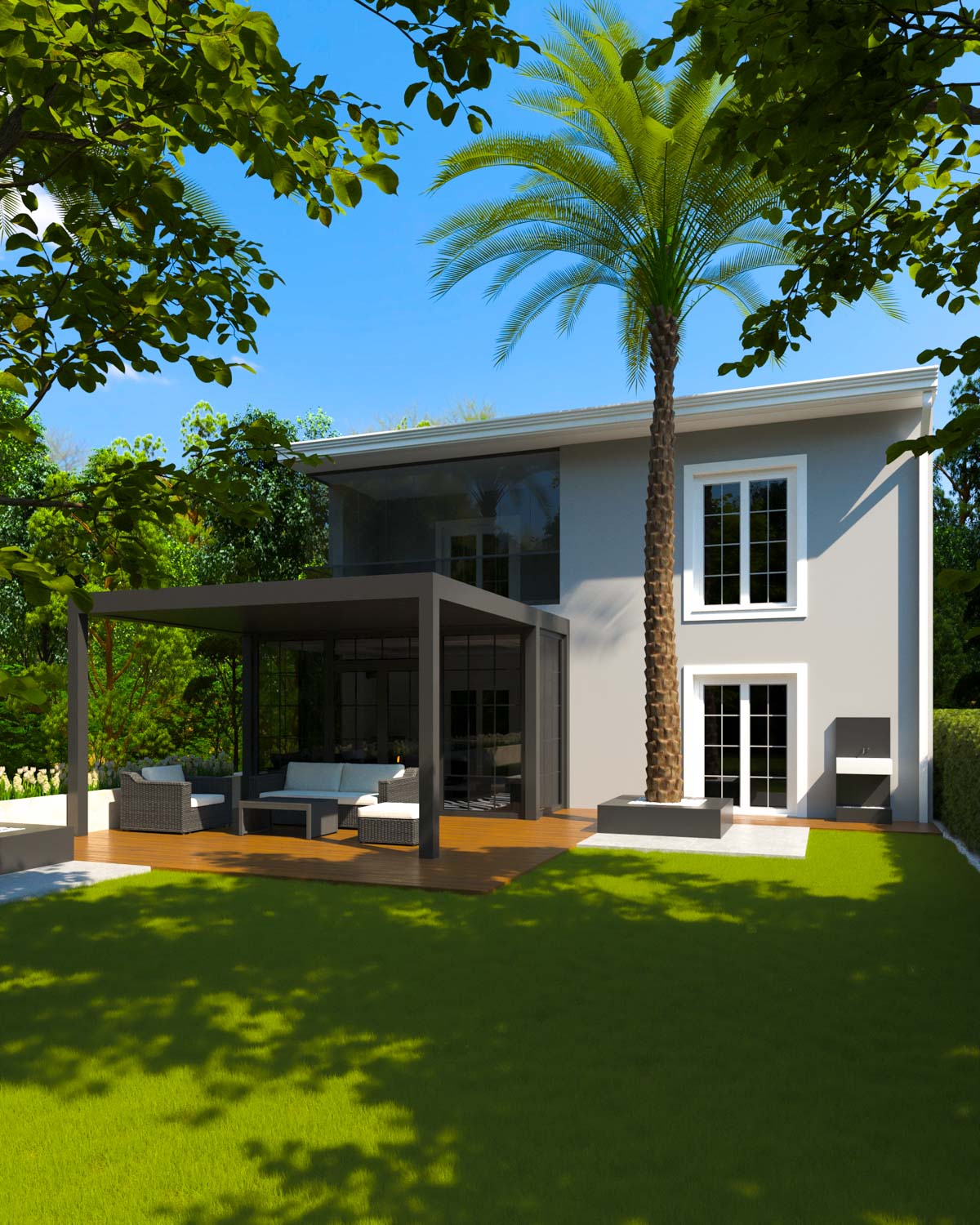 This project reimagines a former winter garden and its adjoining garden in İzmir, Türkiye. The space was extended toward the garden and transformed into a calm, well-defined interior. A pergola creates a semi-outdoor seating area, while the deck floor and palm trees placed in large planters soften the transition between inside and outside, shaping a relaxed and inviting atmosphere.
