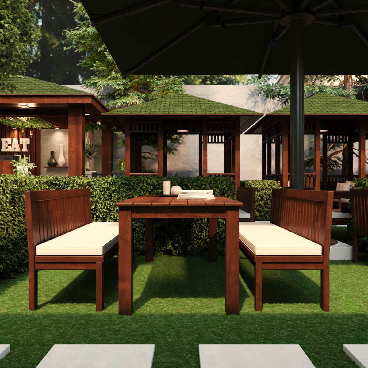 Serving fresh beverages, daily desserts and delicious snacks in a relaxing natural environment, Terra Cafe is a secret heaven for its guests. The pergolas, outdoor furniture and even playground are all made of natural timber, supporting the grounding impact.
