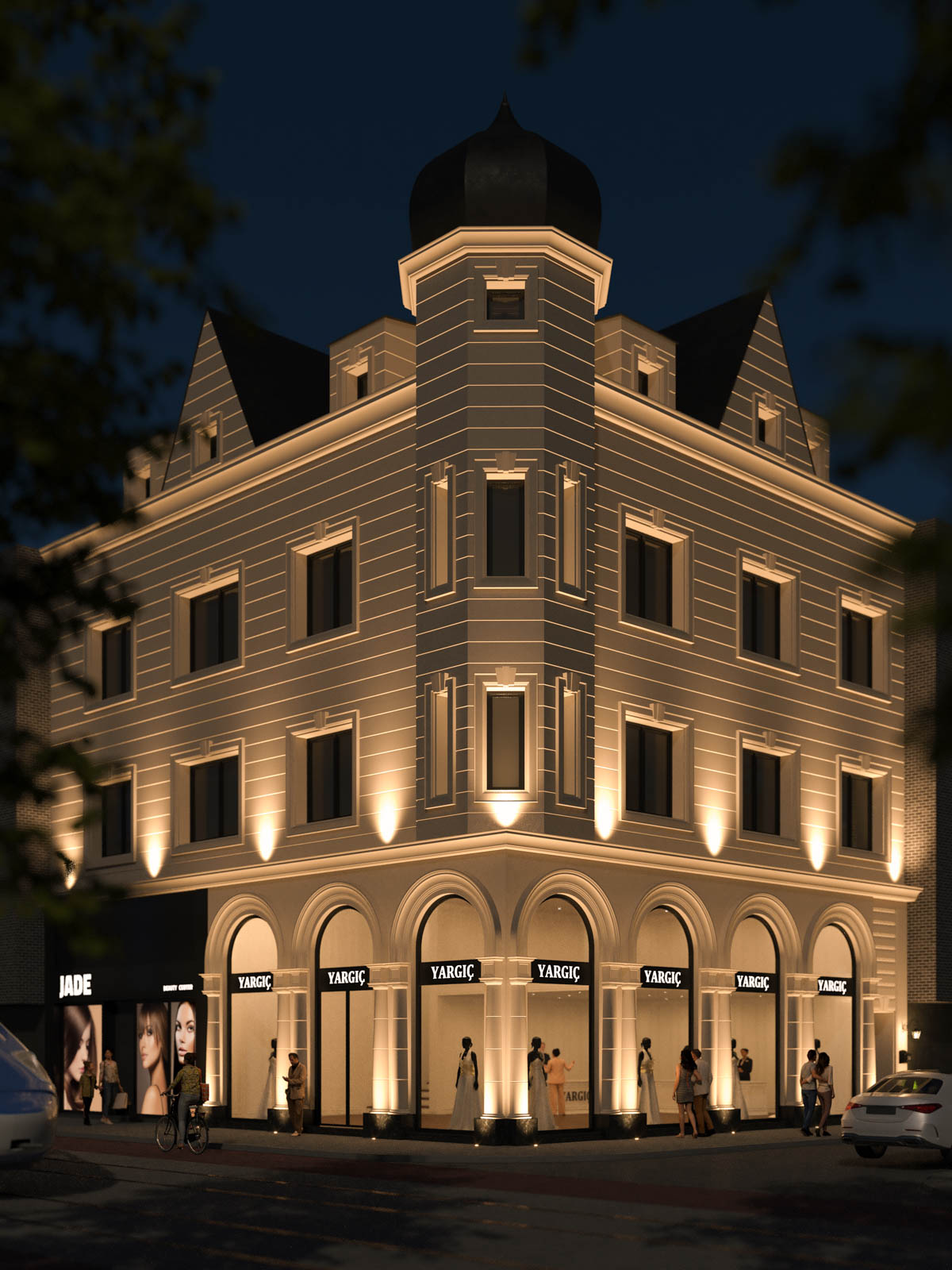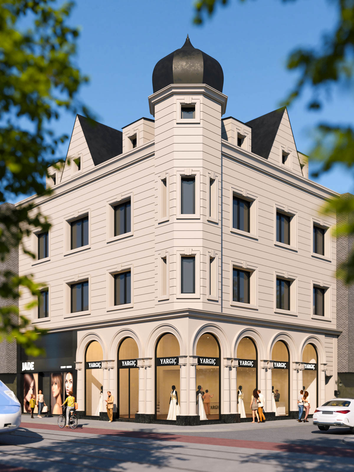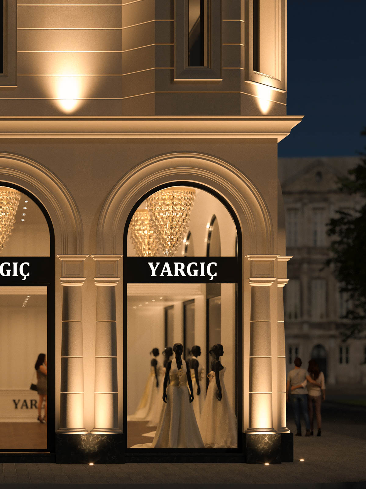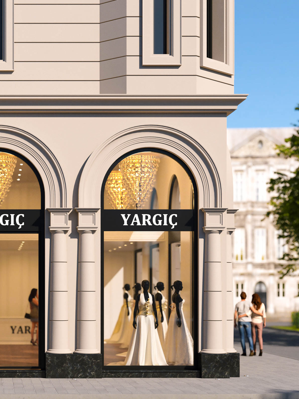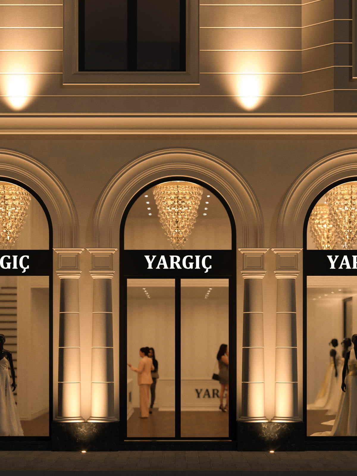 Yargıç Wedding Store is located in Duisburg, Germany and looking forward to welcome its guests with a new facade. A classic baroque style with a natural beige finish fits in perfectly to the concept: elegance. Without adding any saturated colors, black finishing on metal surfaces is silently adding depth to the concept. From top to bottom, the facade of the building is re-designed and the new appearance is adding an undeniable value to the neighborhood.
